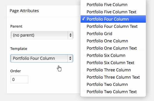 You can change the portfolio template very easily!  Any of our portfolio layouts can utilize any of the 1-6 column layouts.  Follow the steps below to change out the template.